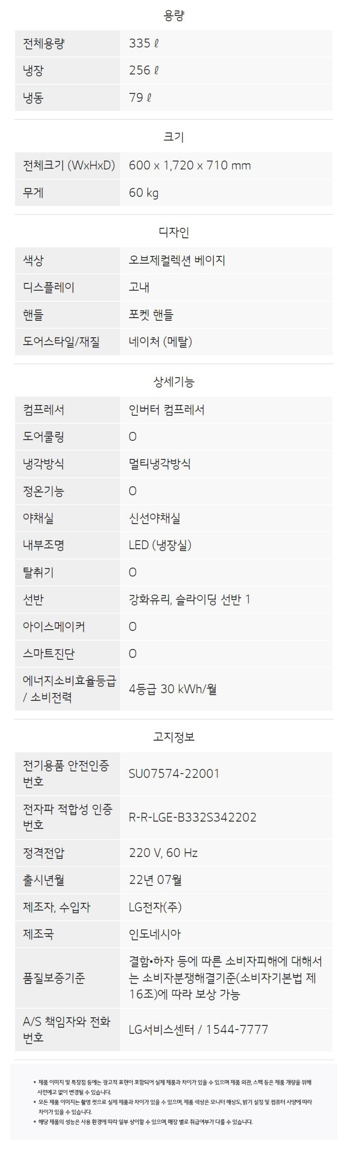 • [LG] 오브제컬렉션 일반냉장고 335L / 베이지 D332MBE34
