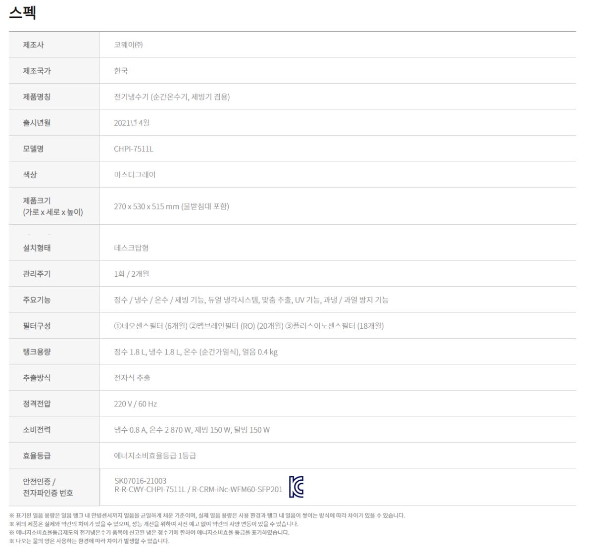 | 60개월 | 60개월 | 45,400 원 | A/S기간 렌탈기간내 무상 [방문주기 4개월] | |||||